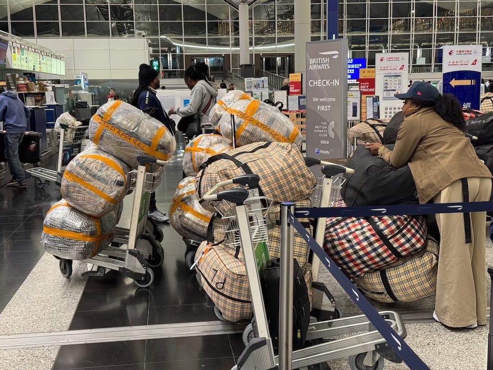 A point of interest was that there were some traders and their bags. I would estimate that a group of three had about 60 pieces to check in.