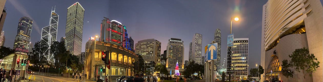 This year I had an impressive slab of roast beef for late lunch and rode the “Star” Ferry a few times over the harbour and back. I sat in Chater Garden for a while and explored the HSBC exhibition. Finally it was time to go. I took this photo as my farewell to Central.
