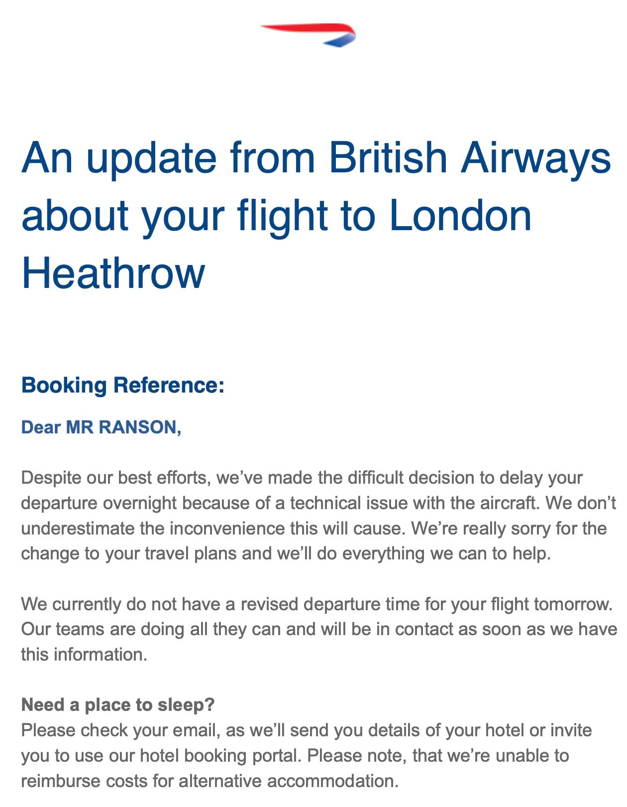 My flight back from holiday was delayed overnight. The way that British Airways handled it I thought was brilliant. So in today’s article I will explain exactly what happened and why I thought that BA did a good job. Read on…